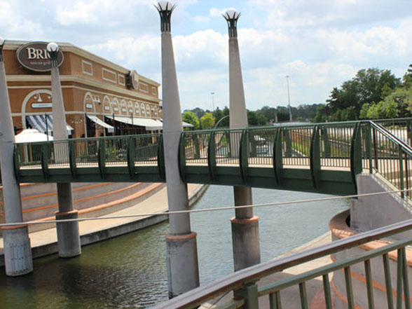 Phase 1-4 town center this project was the section of the waterway along Woodlands Mall including large concrete arch retaining walls, excavation, pedestrian bridge, handrails, fountains, pavers, colored concrete, elevator structures.